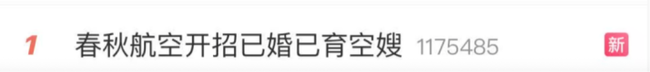 10月27日,“春秋航空开招已婚已育空嫂”的话题冲上热搜榜第一位,引发网友热议。